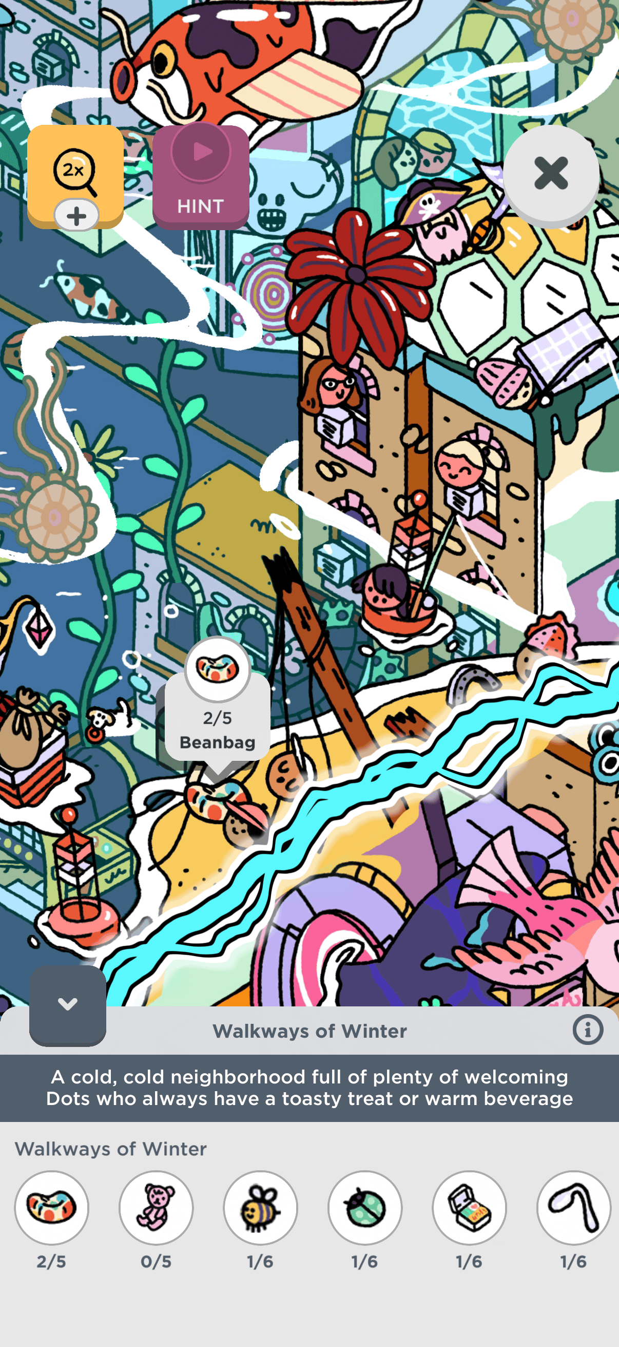 Two Dots Scavenger Hunt answers and solutions to find all the hidden items on all levels